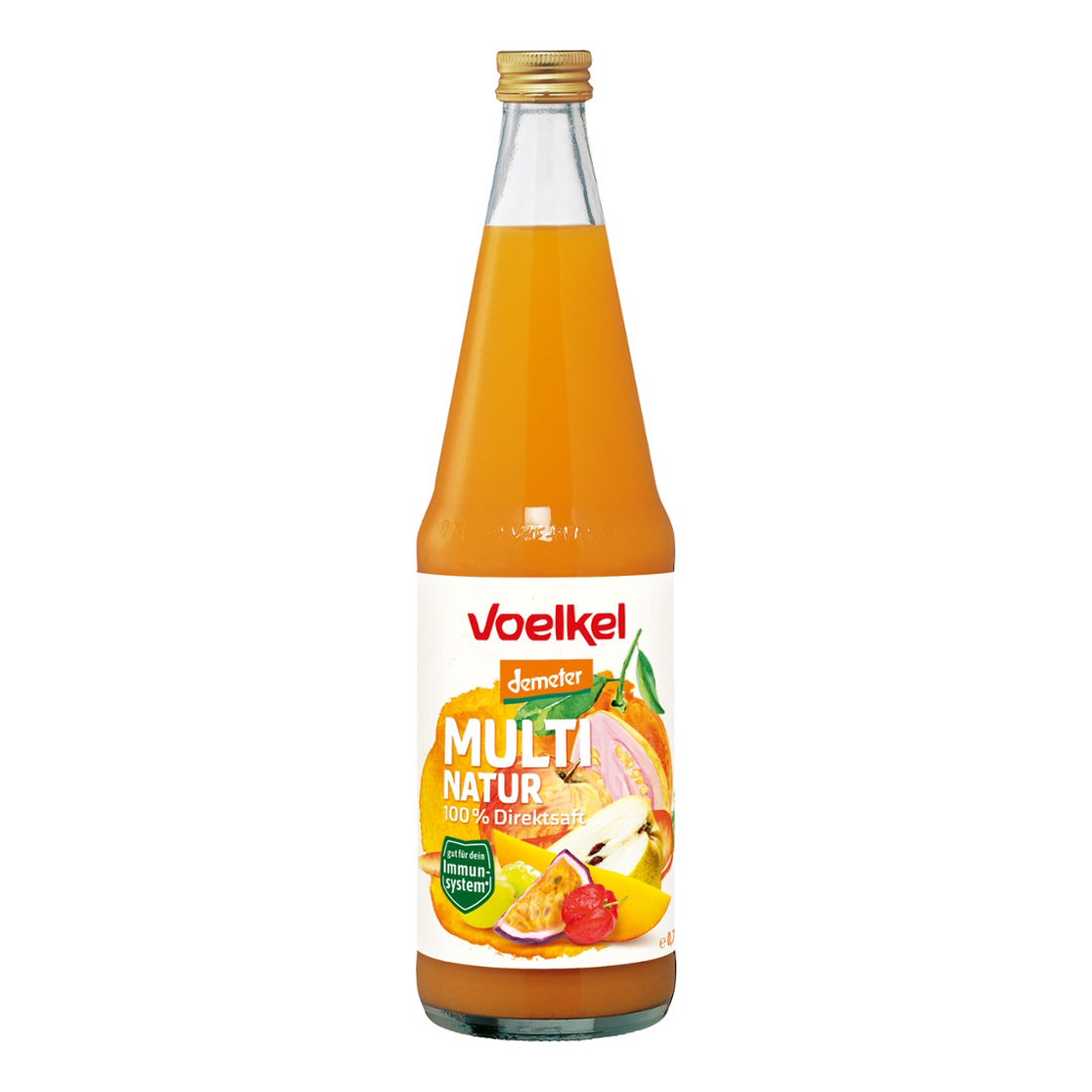 Die sommerliche Saft-Komposition bringt den Geschmack aromatischer Südfrüchte auf den heimischen Frühstückstisch. Durch die schonende Verarbeitung enthält unser Multi Natur viele wertvolle Inhaltsstoffe, darunter die natürlichen Vitamine A und C.