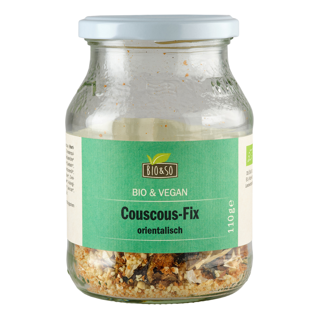Couscous (HARTWEIZEN*) (72%), Tomatenpulver*, Datteln*, Gemüsebrühe(Salz, Maisstärke*, Zwiebeln*, Karotten*, Sonnenblumenöl*, Gewürze*,Kräuter*), Zwiebeln*,