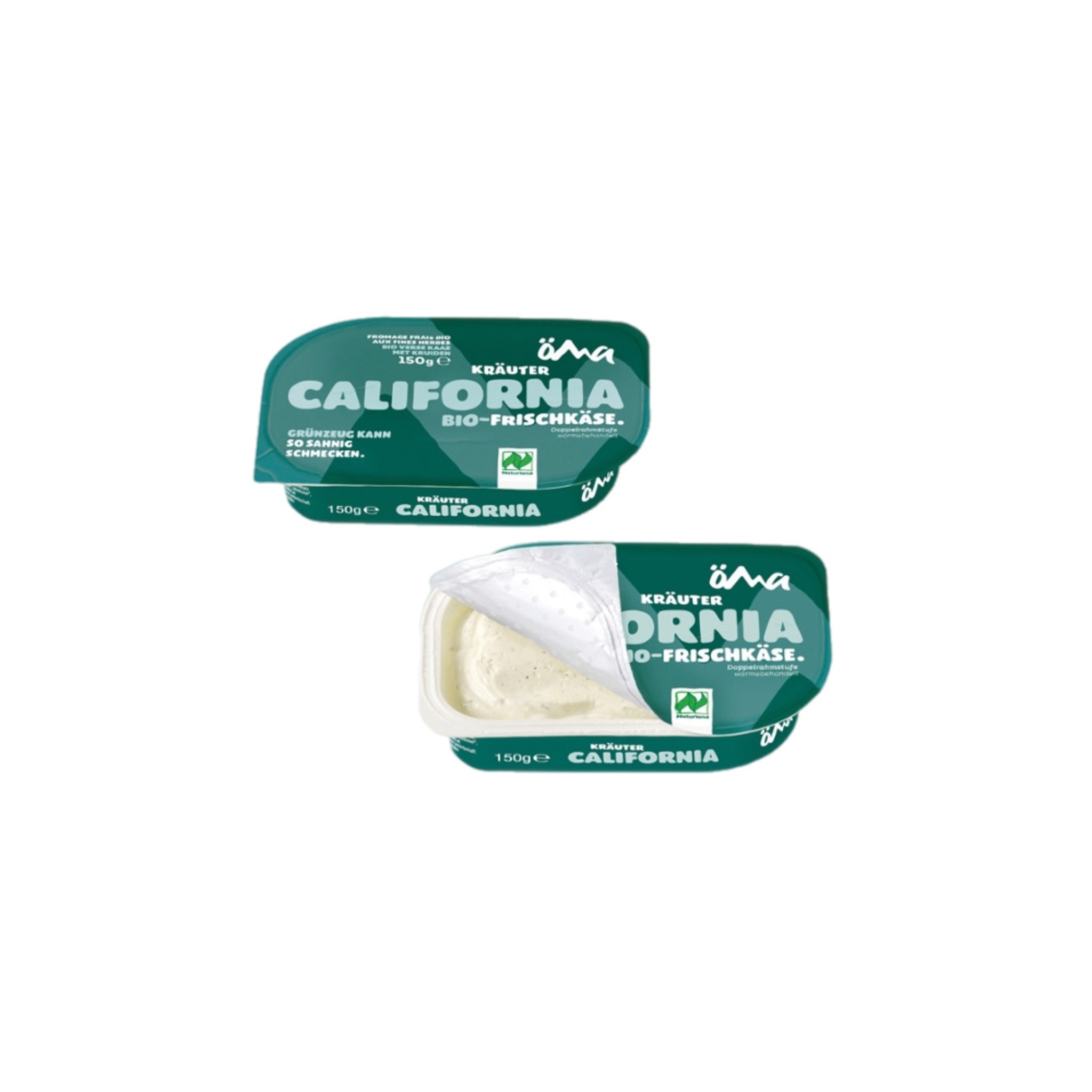 ÖMA California Kräuter ist ein Bio-Frischkäse der Doppelrahmstufe, mild-sahnig mit aromatischem Kräutergeschmack. Hergestellt wird der Frischkäse aus pasteurisierter Naturland-Milch. Unmittelbar nach der Herstellung ist er ohne Reifezeit genussfertig. Seine aromatische Würze erhält er dank einer erlesenen Kräutermischung, die Kerbel, Petersilie, Schnittlauch und Liebstöckel enthält. Was ihn ganz besonders macht ist die Tatsache, dass er ein „echter“ Frischkäse ist und keine Frischkäsezubereitung. Aufgrund seiner cremigen und streichfähigen Konsistenz eignet er sich neben seiner Hauptrolle als Brotaufstrich vorzüglich zur Verfeinerung von Saucen oder in Kombination mit Kräutern für leckere Dips.