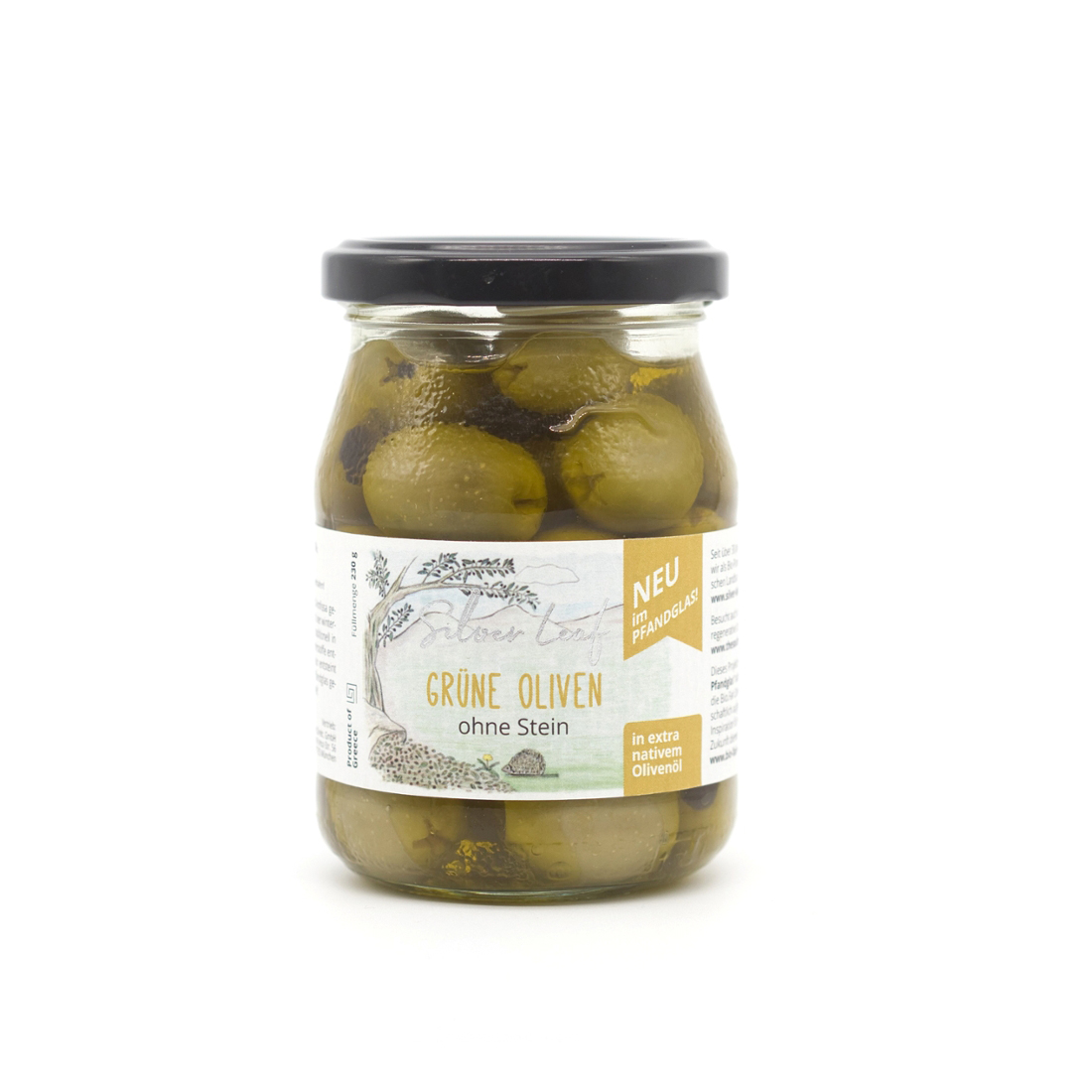 Oliven grün* (85,7%) (Knoblauch*, Meersalz), Rapsöl* (14%) (kaltgepresst), Lorbeer*